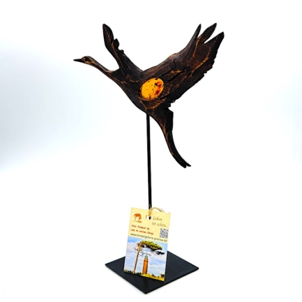 Große Holzskulptur mit Darßer Bernstein und Gravur “Kranich”