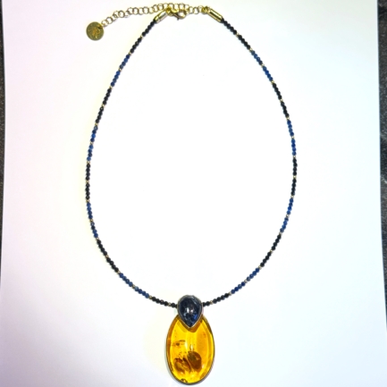Bernstein-Collier Sodalith – 925er Sterling Silber vergoldet