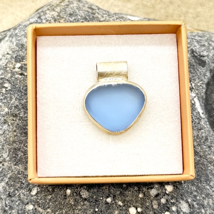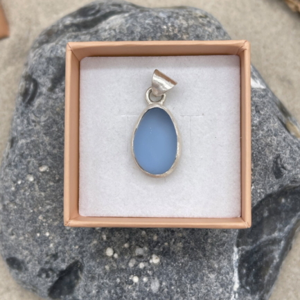Meerglas-Anhänger 925er Sterling-Silber – bläulich