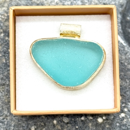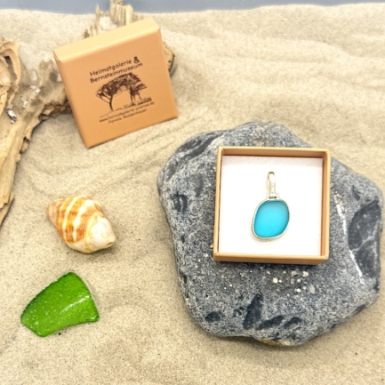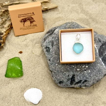Meerglas-Anhänger 925er Sterling-Silber – türkis blau