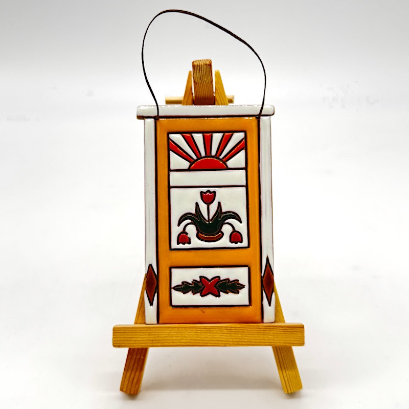Gefertigt aus wetterfestem doppelt gebranntem Ton und und mit Fadenaufhängung zur Befestigung.