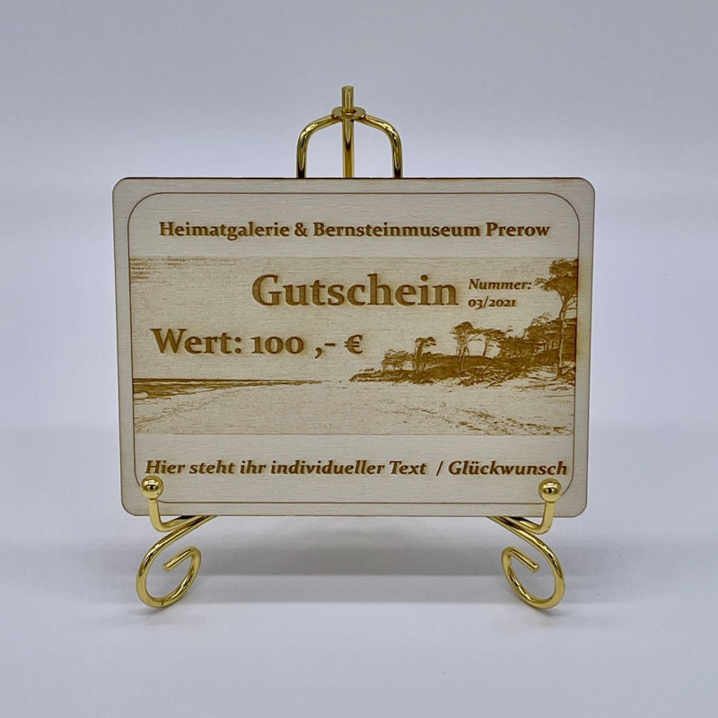 Die Gutscheine sind einlösbar in der Heimatgalerie Prerow und im Darßer Bernsteinmuseum Prerow sowie nach Rückfrage per E-Mail auch bei unserem Sortiment im Onlineshop. (Gutscheine im Onlineshop nicht direkt abziehbar, wir senden aber gerne im Gutscheinwert zu, wenn du uns kurz eine E-Mail mit deinen Wünschen schreibst an info@heimatgalerie-prerow.de)
