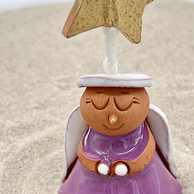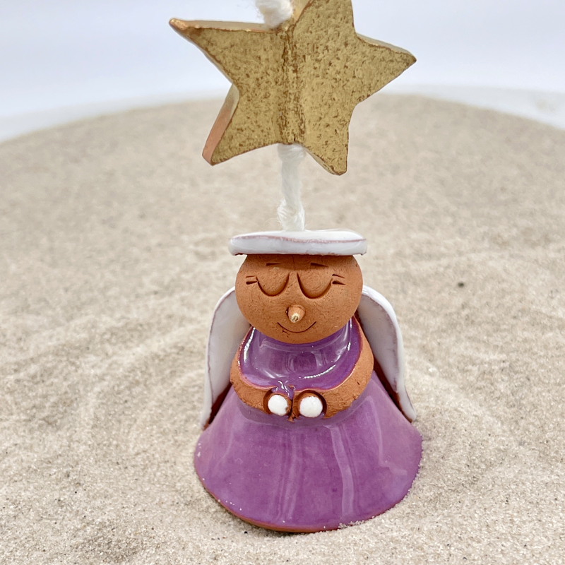 Wunderschöne kleine handgemachte Engel-Glocke aus Keramik, doppelt gebrannt. Geeignet als Schmuck für jeden Weihnachtsbaum oder als Schutzengel für einen besonderen Menschen. Jeder Engel ist anders und kann in Form und Farbnuance geringfügig abweichen. Du wirst mit unserer Auswahl zufrieden sein.