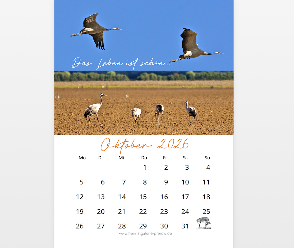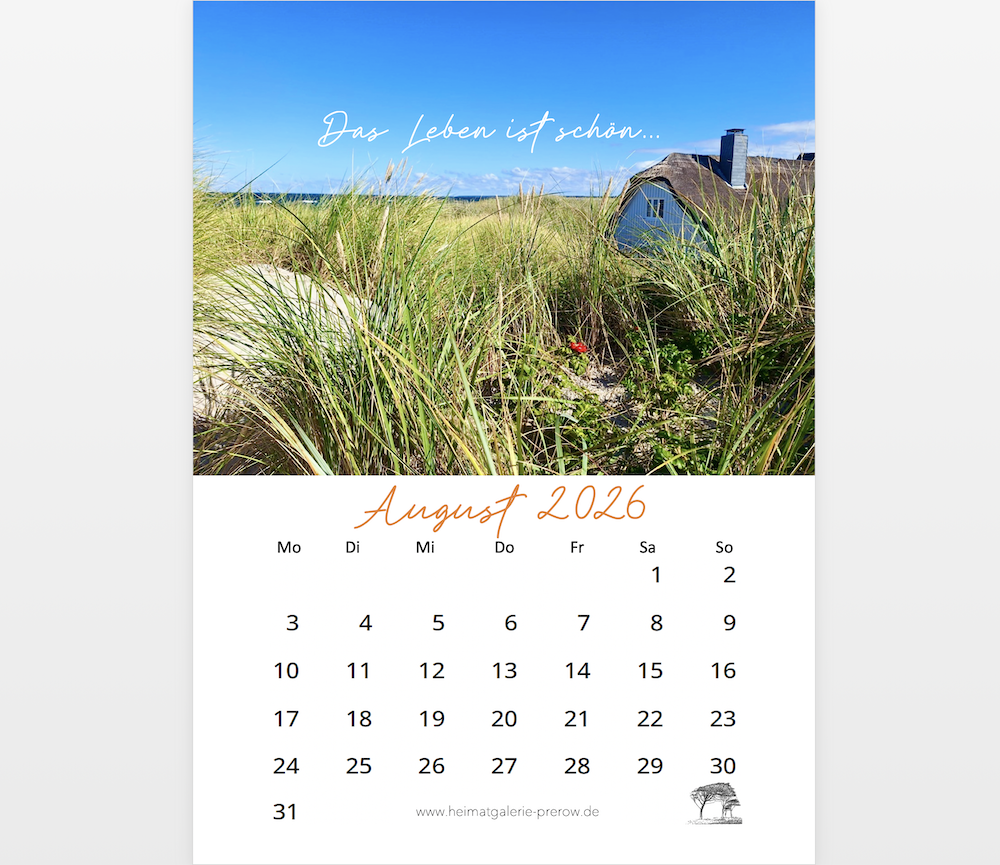 Der kleine Kalender vom Darß für das Jahr 2026 überrascht dich mit typischen Aufnahmen von der wunderschönen Darßer Westküste, heimischen Tieren und beeindruckenden Landschaften. Unsere hauseigenen Fotografien unterstreichen die Einzigartigkeit und Natürlichkeit im Land zwischen Meer und Bodden.