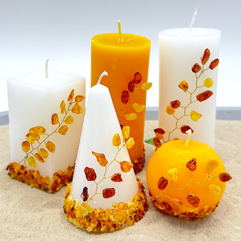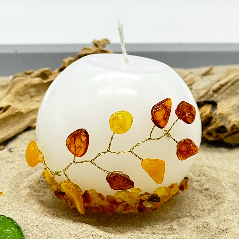 – Exklusive Dekokerze mit echten Bernsteinen –