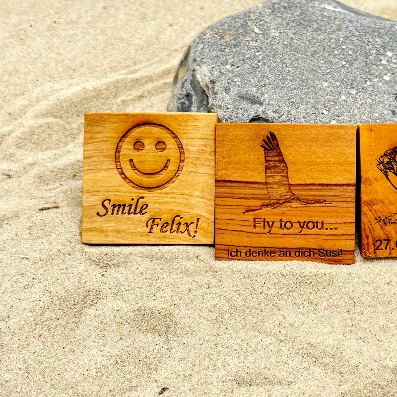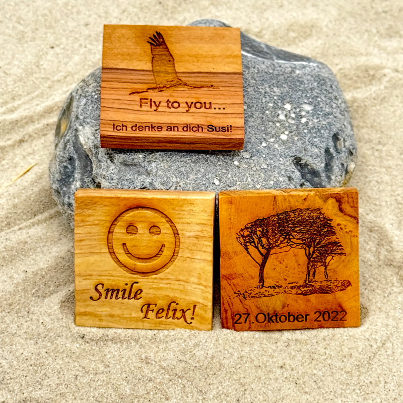 Deine Wunschgravur auf unseren Naturholzartikeln. Wir fertigen unsere Unikate in unserer Familienwerkstatt nach deinen Wünschen für das gewisse Etwas an Besonderheit. Gib einfach deinen Wunschtext in den dafür vorgesehenen Konfigurator ein, wähle die Schriftart aus und ergänze auf Wunsch eines unserer vorgegebenen Logos / Cliparts. Optional kannst du Positionierungshinweise angeben, die wir bestmöglichen nach Optik und Machbarkeit umsetzen werden. Du wirst mit unserer Auswahl zufrieden sein.