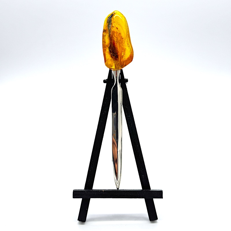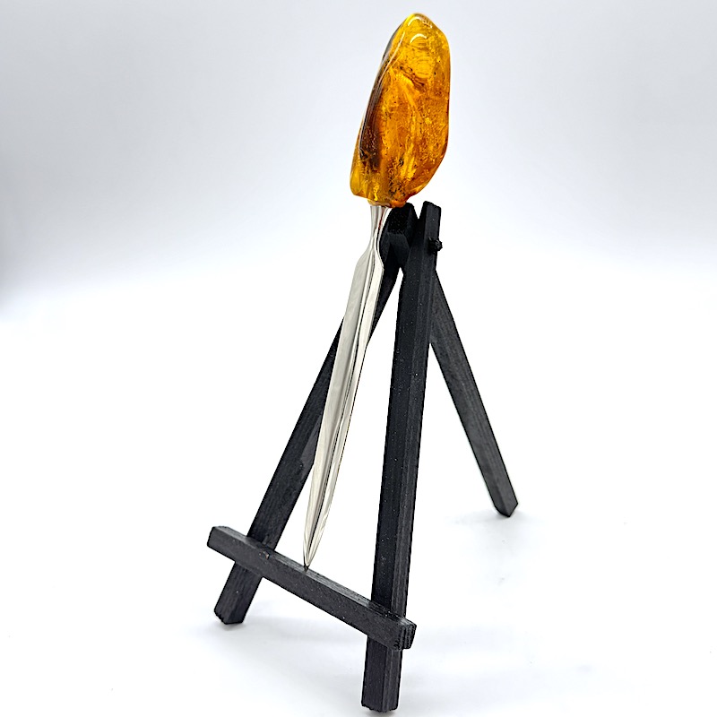 Glänzende robuste Metallklinge und Naturbernstein. Du erhältst genau den abgebildeten Artikel.Maße: