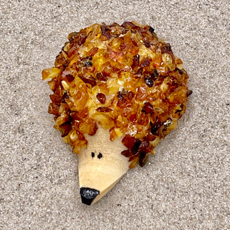 Handgefertigter Holzigel, bestückt mit echtem Naturbernstein, erhältlich in unteraschiedlichen Grössen und Ausführungen…