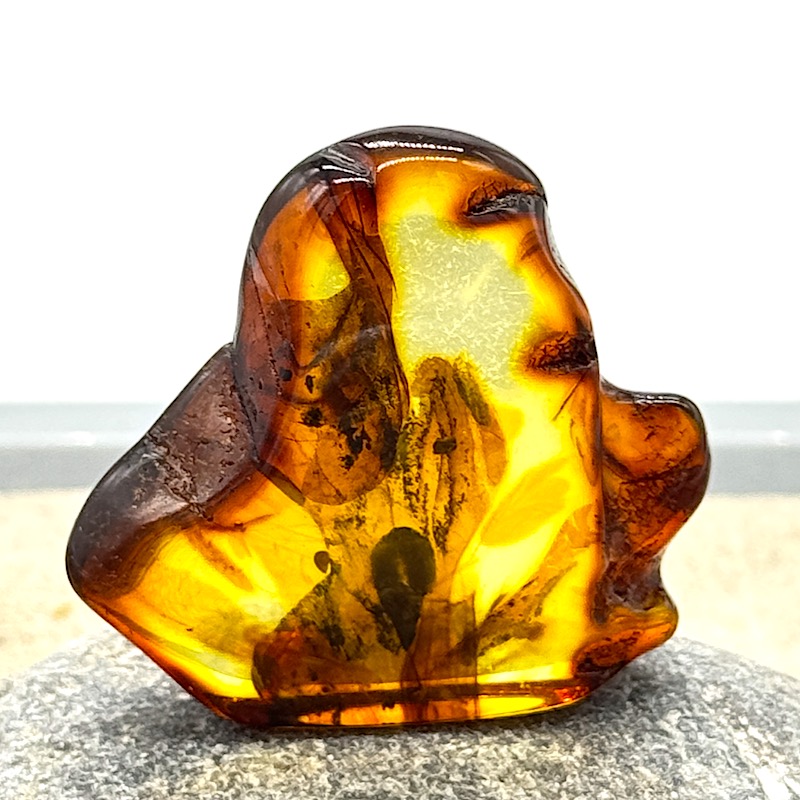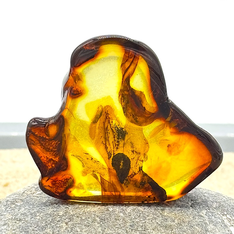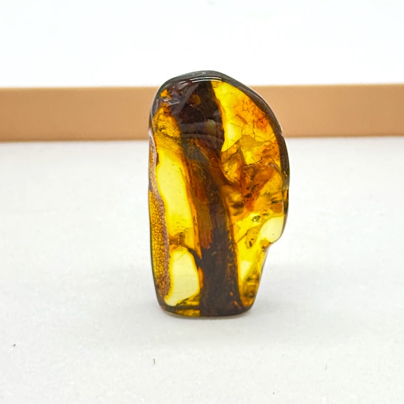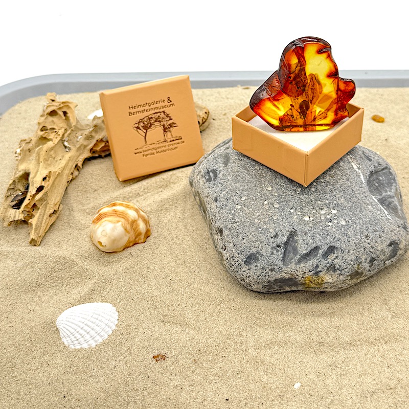 Mit diesem besonders klaren wunderschönen Standstück kommt die Sonne zu dir. Es ist sehr leuchtend und wärmt mit seinem Glanz und seiner Klarheit das Herz und die Seele. Schaut man hinein, so hat man einen Blick in die Urzeit. Ein tolles Vitrinenstück und ein echter Hingucker – etwas ganz Besonderes! Bernstein fasziniert seit Jahrtausenden die Menschen in vielen Ländern der Welt. Wir haben für dich an dieser Stelle ein ganz besonders schönes Exemplar ausgewählt…