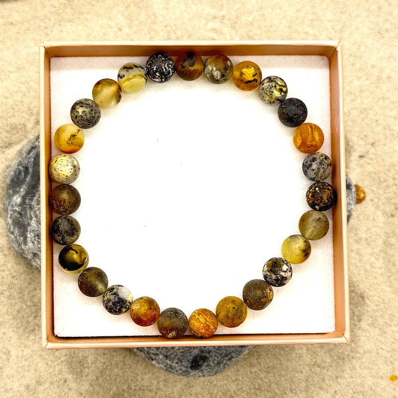 Dieses rustikale, natürlich matte Bernsteinarmband mit einzigartigen Perlen gibt einen strandigen, natürlichen Look…