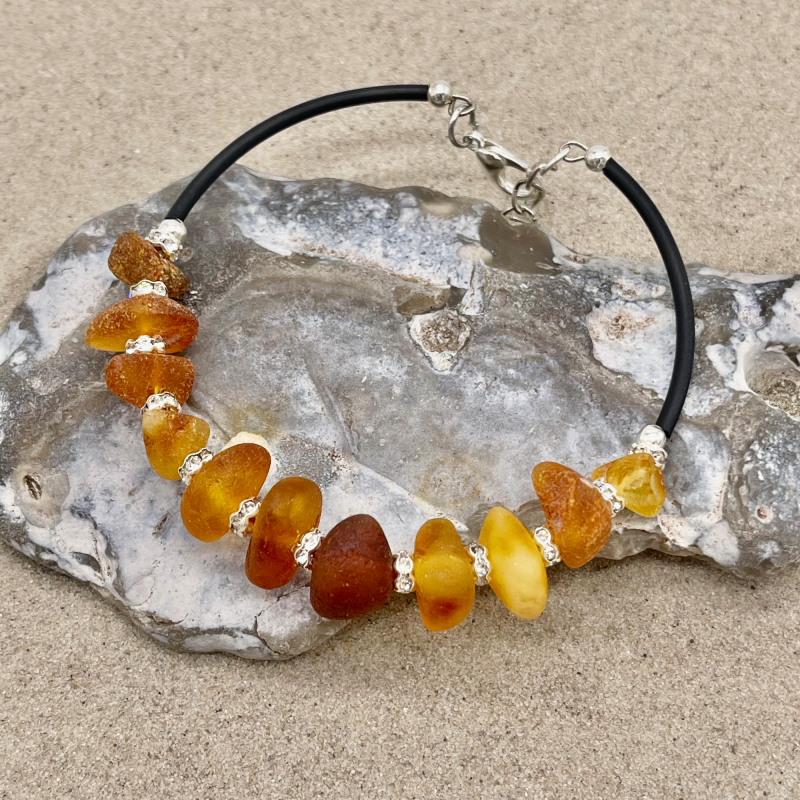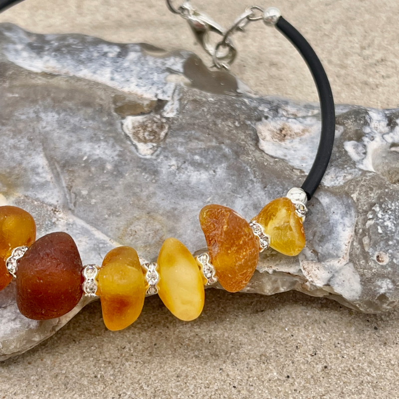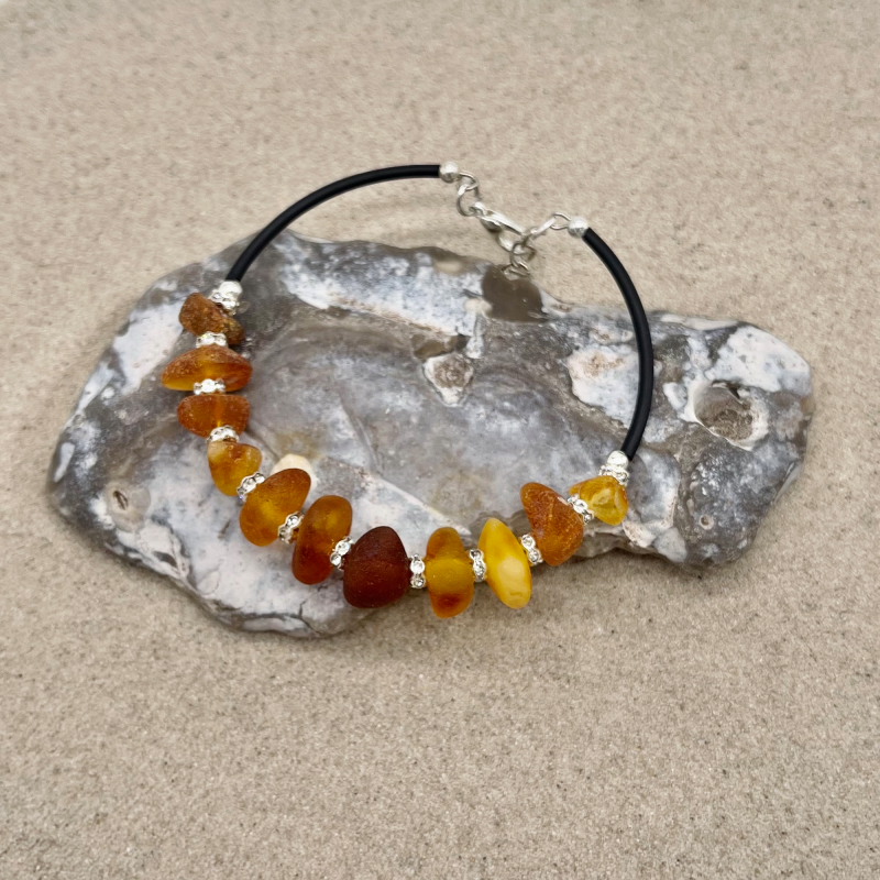 Armband einreihig Roh-Bernstein mit Karabiner und Verlängerungskettchen