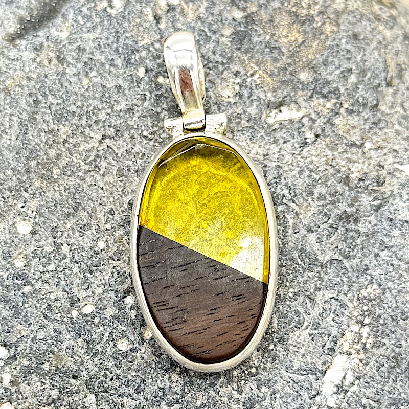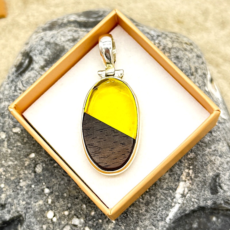 Entdecken Sie die perfekte Symbiose aus Natur und Eleganz… Unsere einzigartigen Anhänger kombinieren Treibholz sowie Ebenholz mit dem goldenen Schimmer