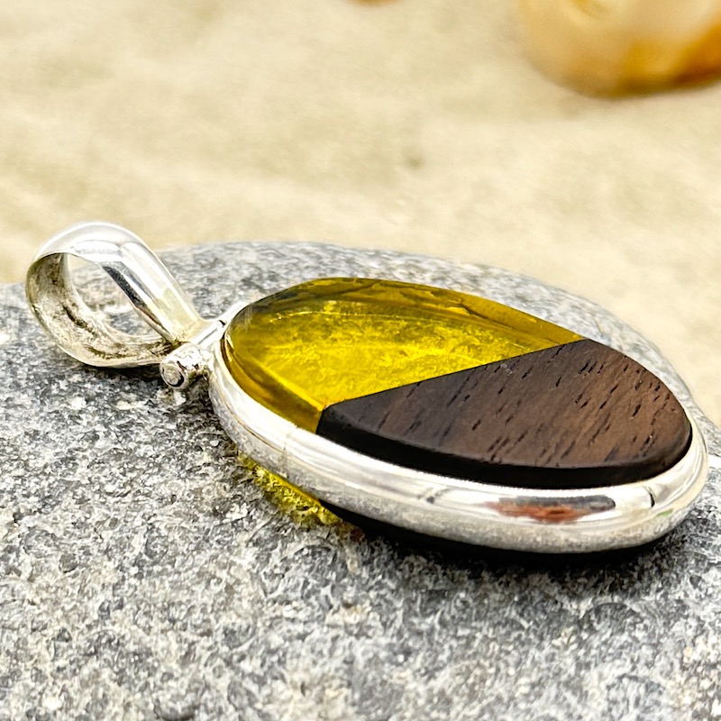 eines hochwertigen Bernsteins eingefasst in edlem 925er Sterling- Silber.