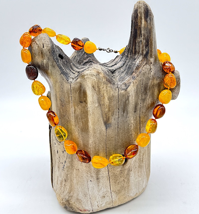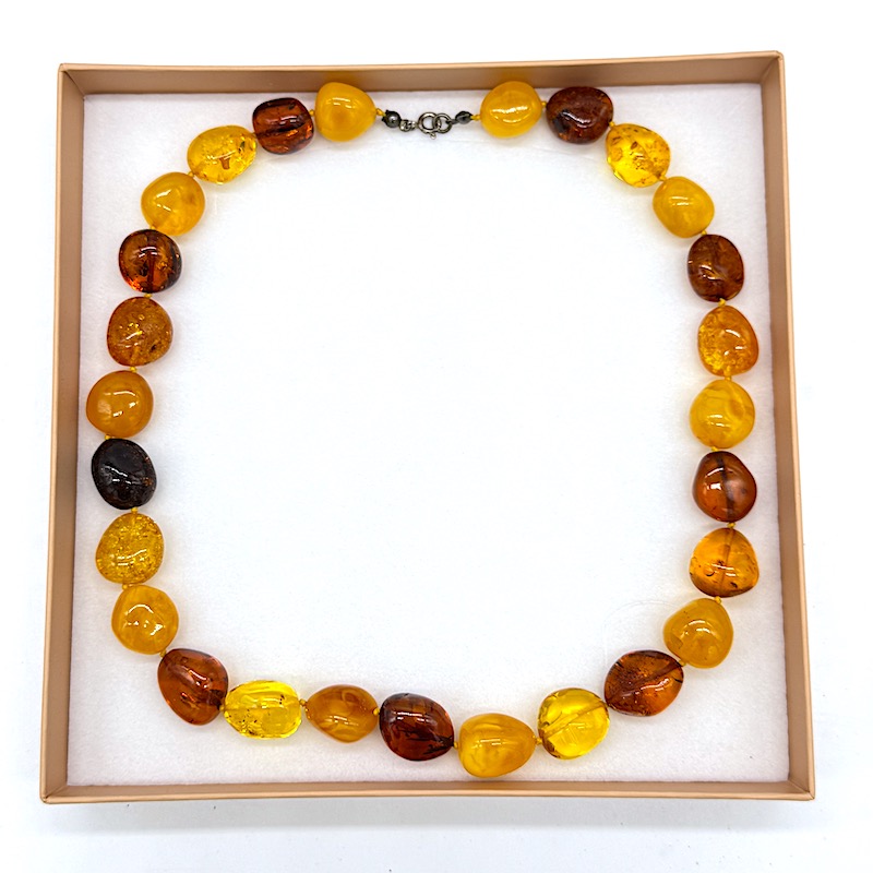 Wunderschöne Bernstein-Oliven-Kette mit Karabinerverschluss aus 925er Sterling Silber.