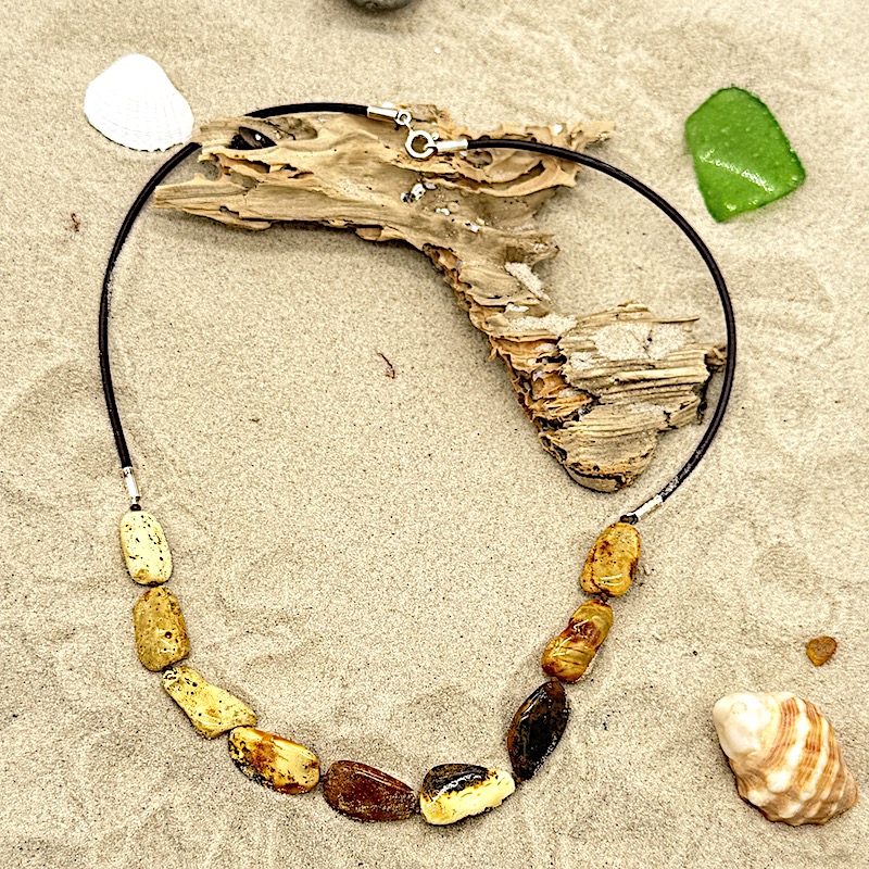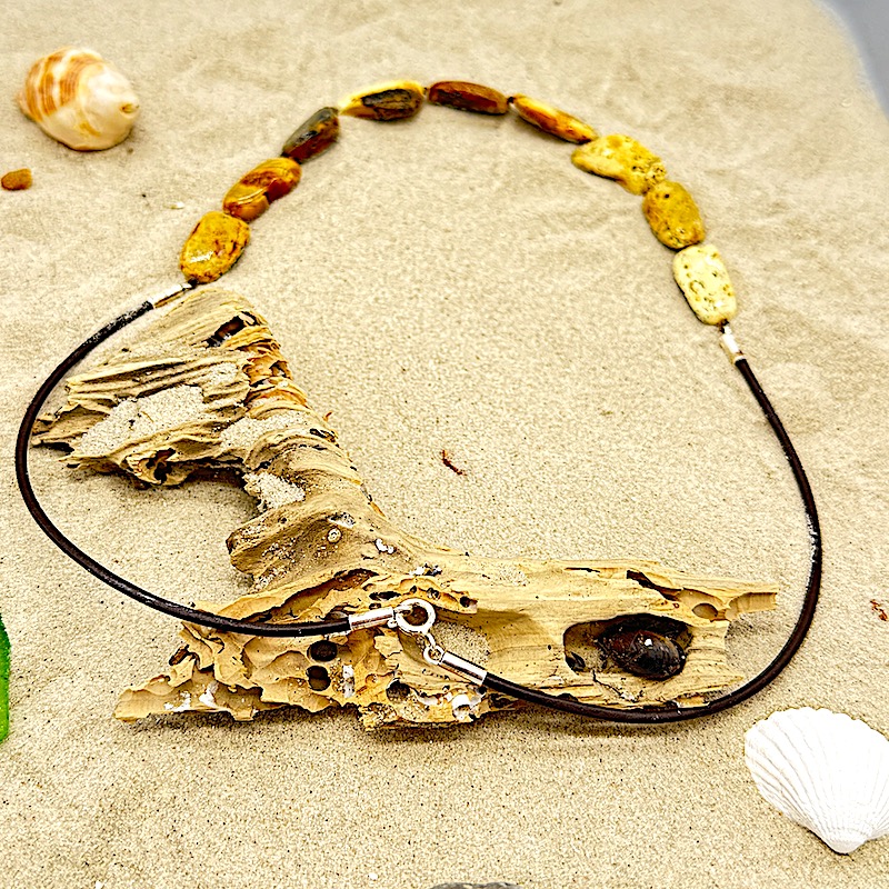 Materialien: Naturbernstein, Leder, 925-er Sterling Silber