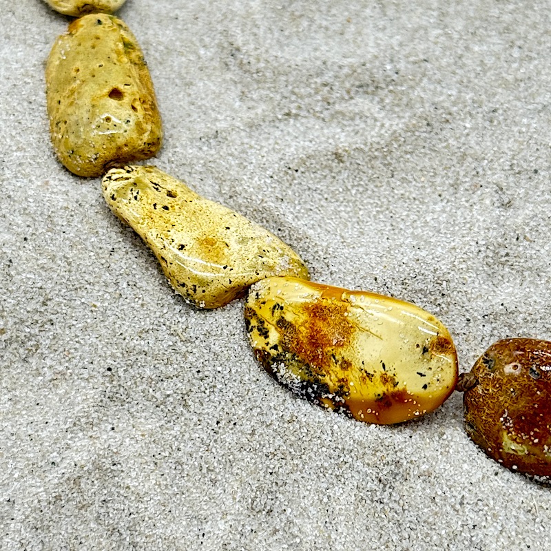 Jedes Collier ist natürlich ein Unikat und unterscheidet sich in der Größe der Bernsteine & der Form und Farbe der Bernsteine.