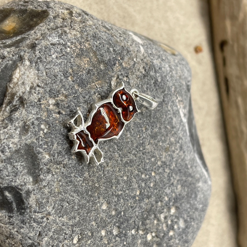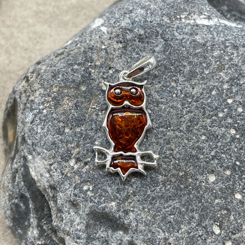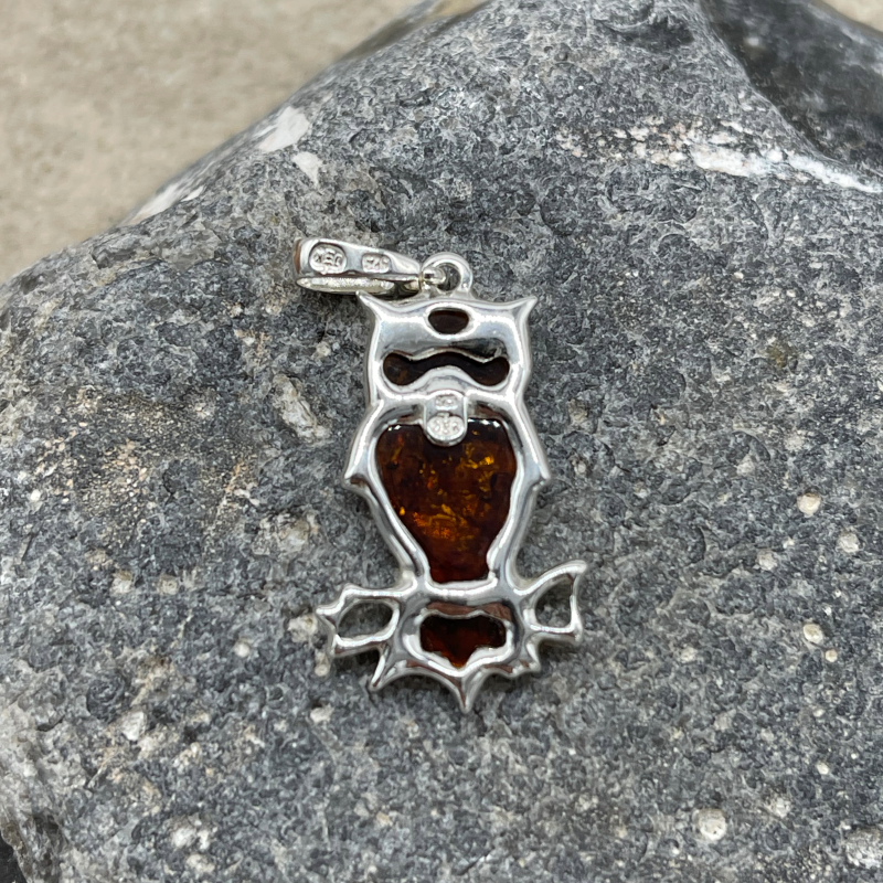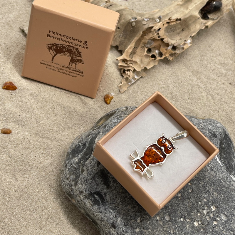 Anhänger Eule Bernstein – 925er Sterling-Silber