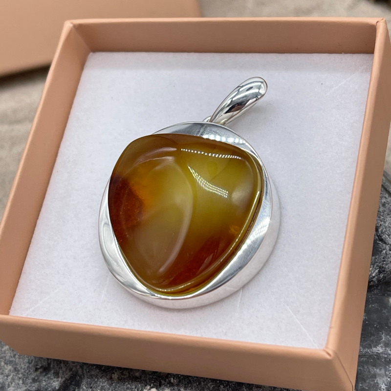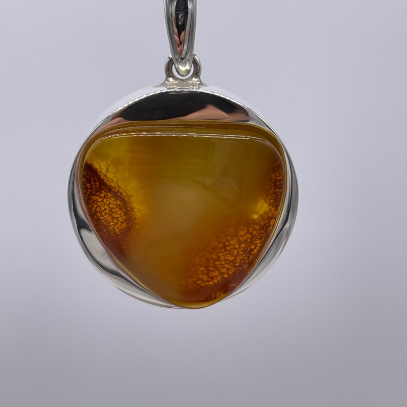 Bernsteinkugel Mosaikanhänger Silber-ummantelt Groß – 925er Sterling-Silber