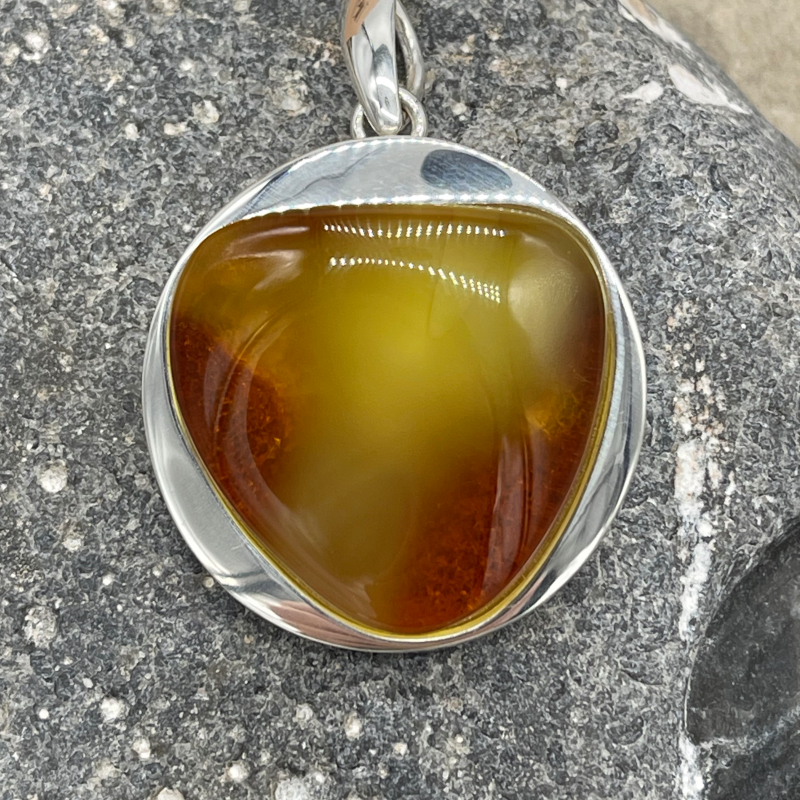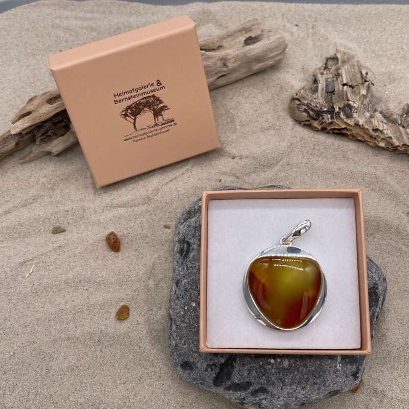Modern gefasster Bernsteinanhänger Milchig groß / 925er Sterling Silber