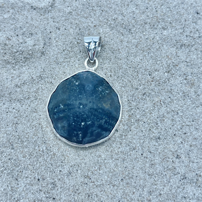 Einzigartiges Unikat eines fossilen Seeigels, mittig geschnitten, verarbeitet in 925er Sterling Silber… Der Seeigel stammt von der Westküste der Halbinsel Darss und atmet den Hauch seiner Millionen Jahre alten Geschichte in der Entwicklung unserer Mutter Erde.