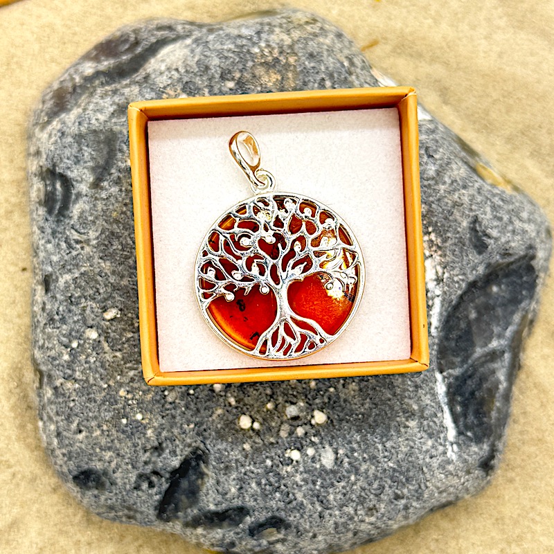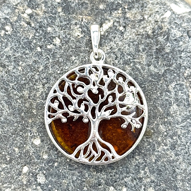 Der Lebensbaum – Anhänger aus Sterlingsilber mit Bernstein ist ein beliebtes Schmuckstück, das Symbolik für Kraft, Wachstum, Zuversicht und Glück vereint!