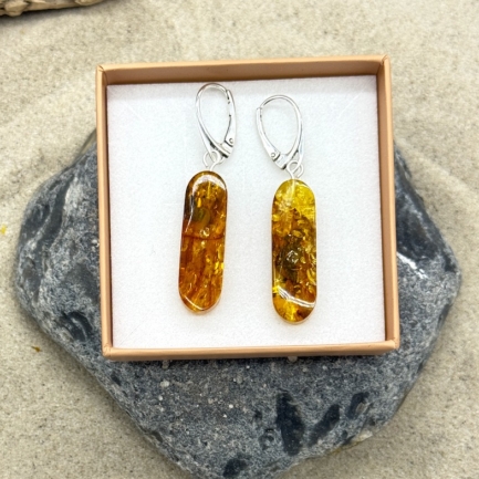 Einzigartige Ohrhänger mit dem beliebten Abbild eines Windflüchters vom Darßer Weststrand, gefertigt aus massivem 925er Sterling-Silber, besonders aufgewertet durch die Fassung leuchtender Bernsteine von der Ostseeküste. Preis pro Paar…