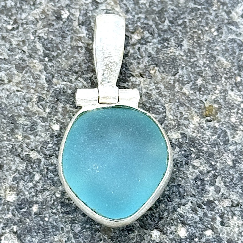 Meerglas-Anhänger 925er Sterling-Silber – bläulich