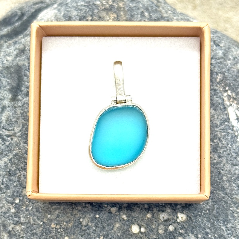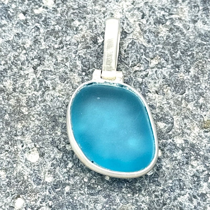 Edler 925er Sterling-Silber Anhänger mit eingearbeitetem Strandglas, der wirklich Lust auf Meer macht!