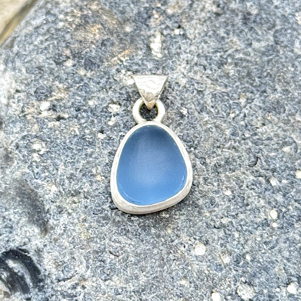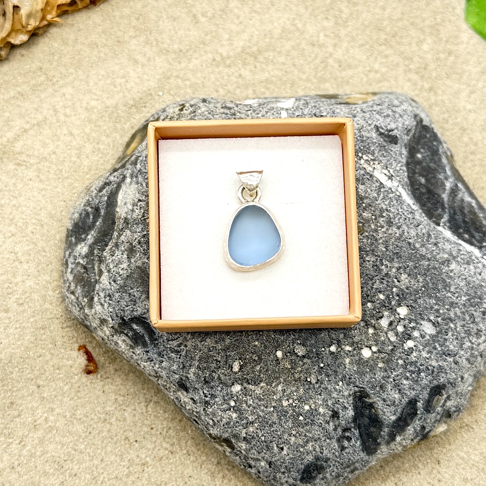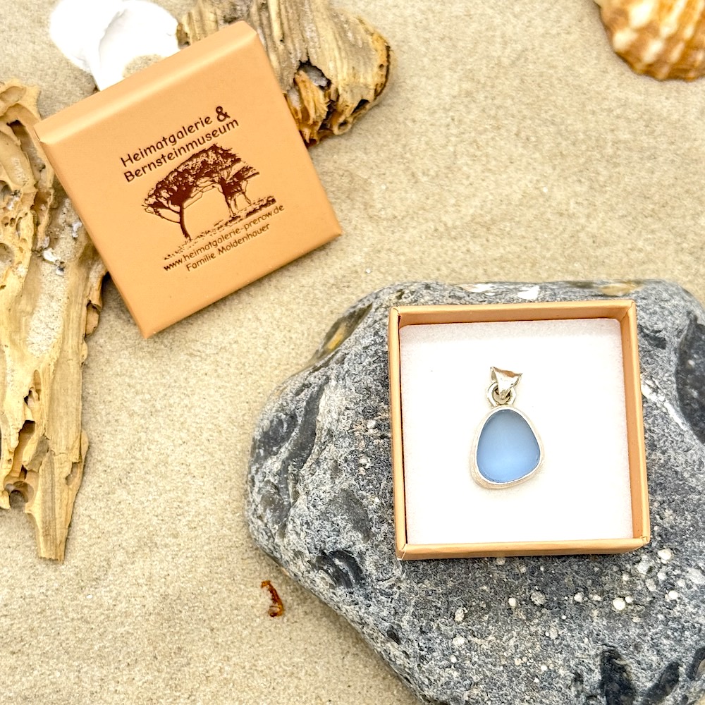 Meerglas-Anhänger 925er Sterling-Silber – helles blaugrau