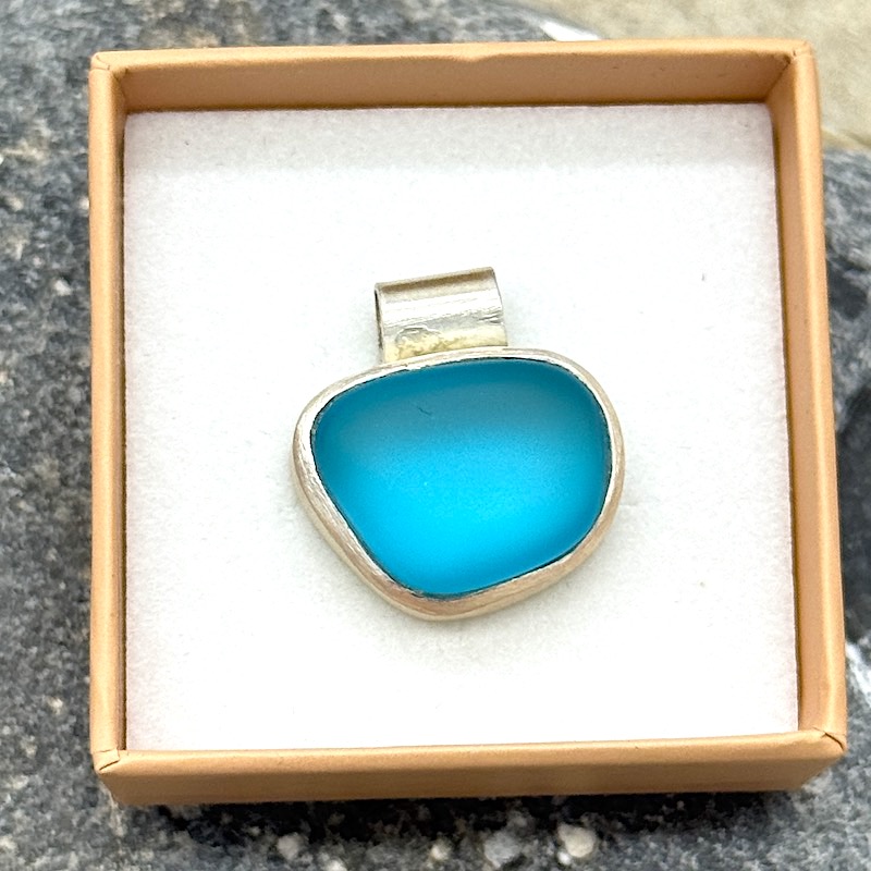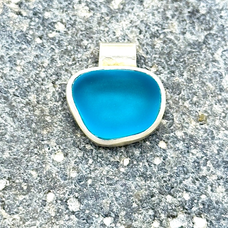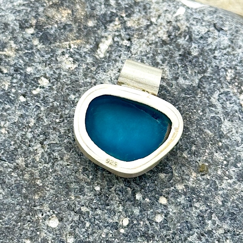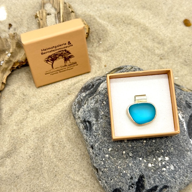 Meerglas-Anhänger 925er Sterling-Silber – türkis blau