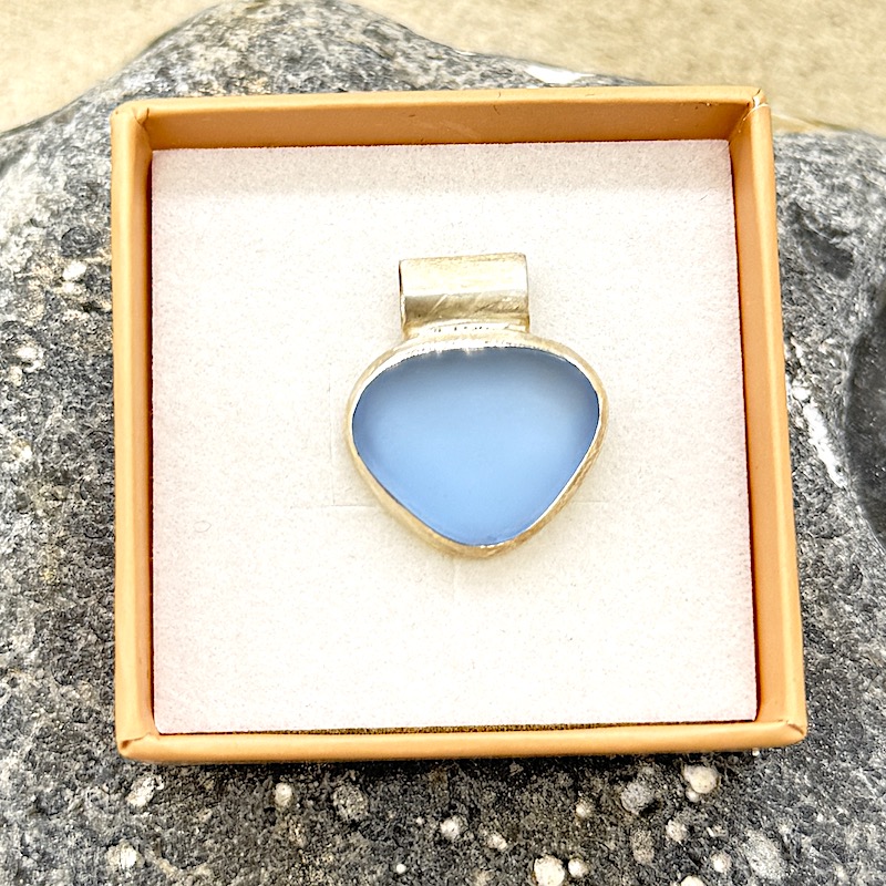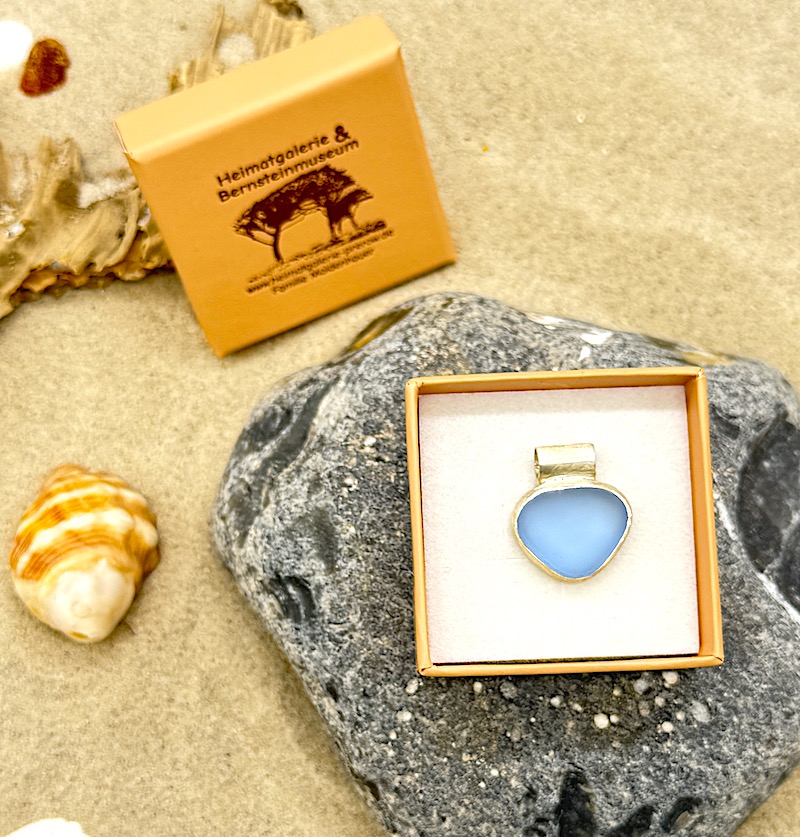 Meerglas-Anhänger 925er Sterling-Silber – Ostseeblau