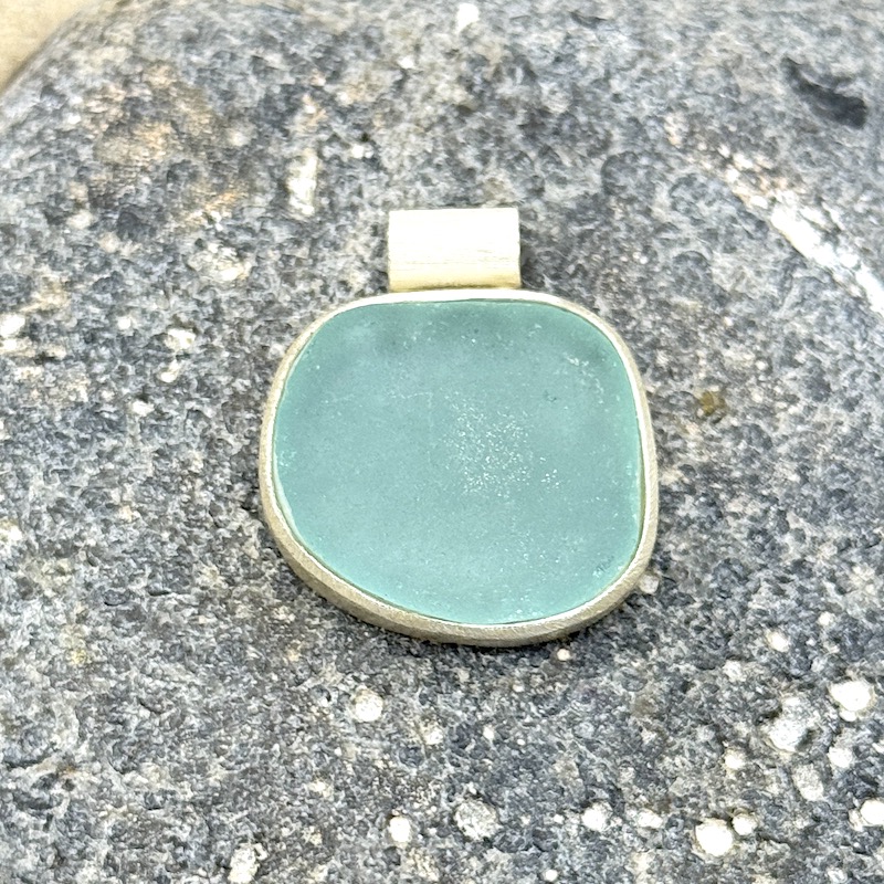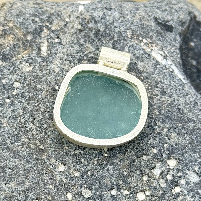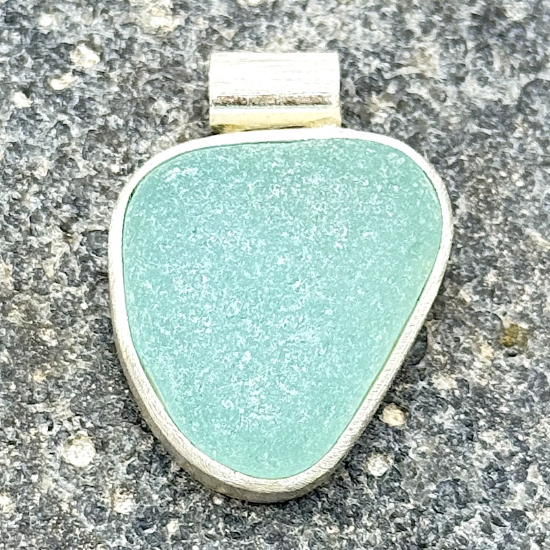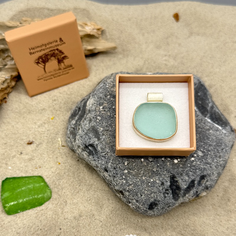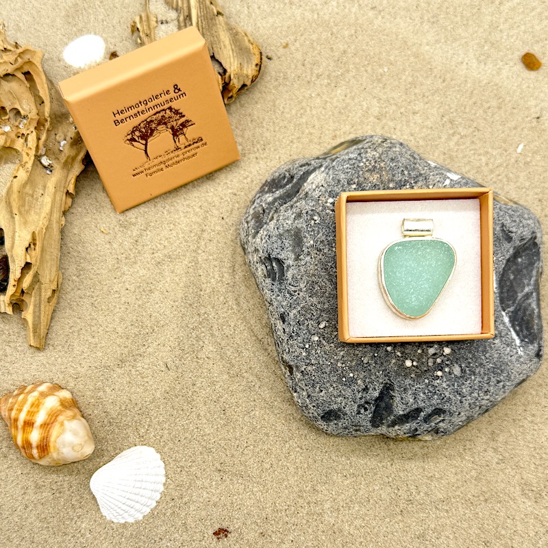 Edler 925er Sterling-Silber Anhänger mit eingearbeitetem Strandglas, der wirklich Lust auf Meer macht! Die aufwendige Silberfassung ist stark matt gebürstet. Unser Meerglasschmuck findet sich in einzigartigen Farben und Formen wieder. Jedes Schmuckstück ist ein Unikat und du erhältst hierbei genau das abgebildete Produkt. Schau dir unsere gesamte Auswahl an.