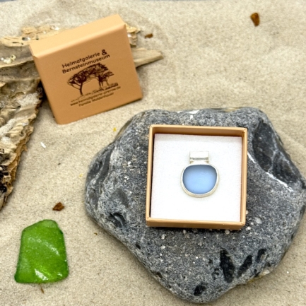 Meerglas-Anhänger 925er Sterling-Silber – helles blaugrau