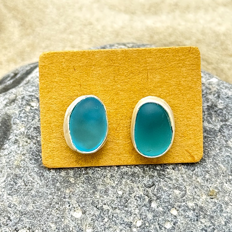 Wunderschöne Ohrstecker mit Strandglas, verarbeitet in edlem 925er Sterling Silber, die Lust auf Meer machen. Unsere Ohrstecker sind in verschiedenen Größen gefertigt, entdecke sie in unserer Übersicht der Produkte. Das Silber ist matt gebürstet und unterstreicht so die Natürlichkeit des verarbeiteten Materials. Unser Meerglasschmuck findet sich in einzigartigen Farben und Formen wieder. Entdecke auch unsere passenden Ringe und Anhänger.