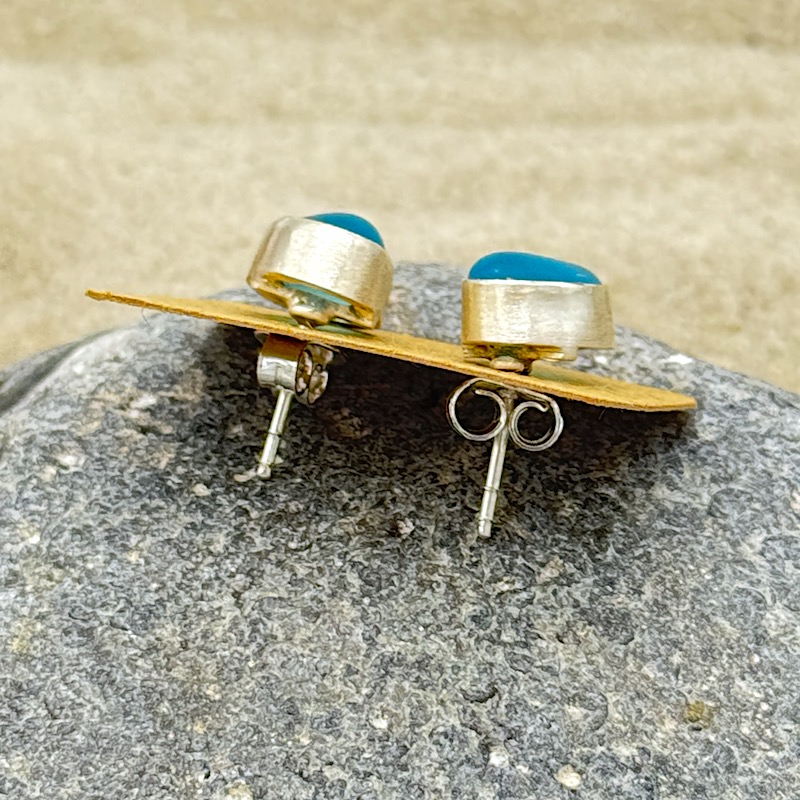 Meerglas Ohrstecker 925er Sterling-Silber – türkis bläulich