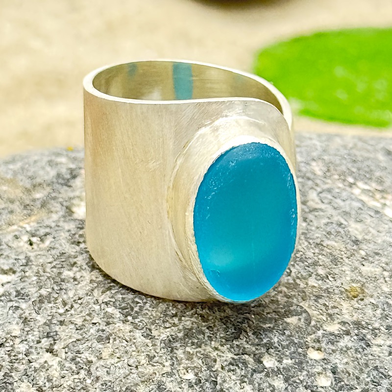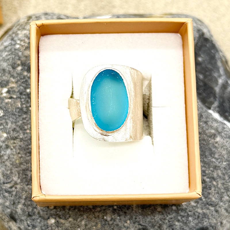 Meerglasring 925er Sterling-Silber – Strahlendes Türkis