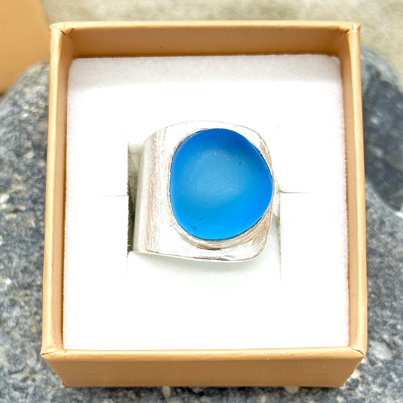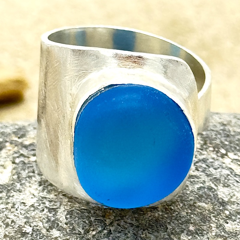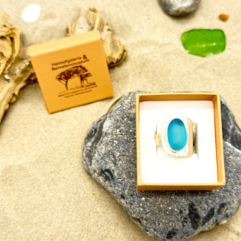 Exclusiver größenverstellbarer Ring mit Strandglas, verarbeitet in edlem 925er Sterling Silber, der Lust auf Meer macht :):):)