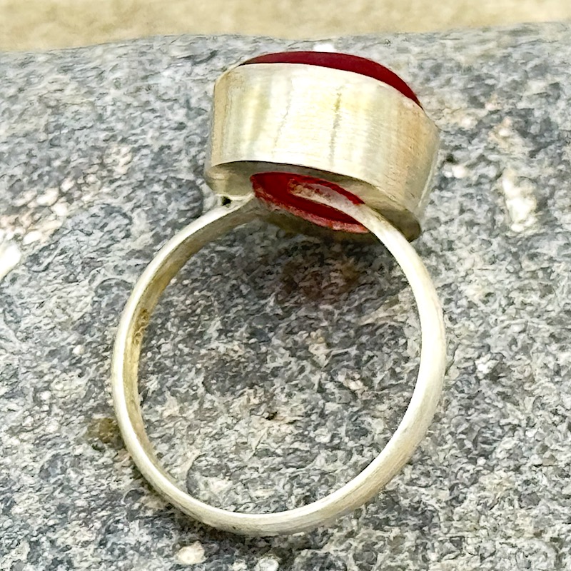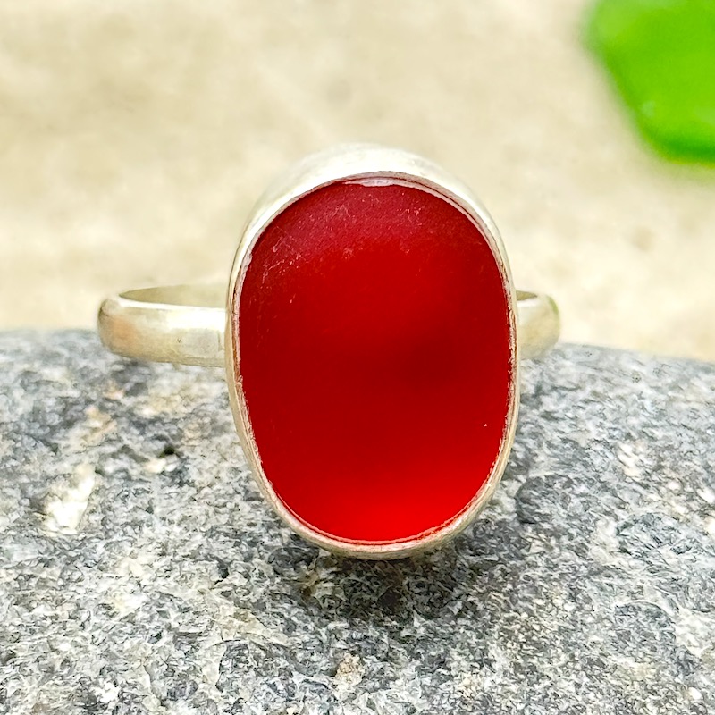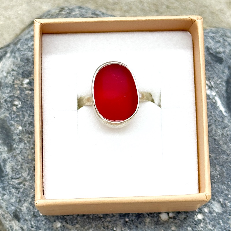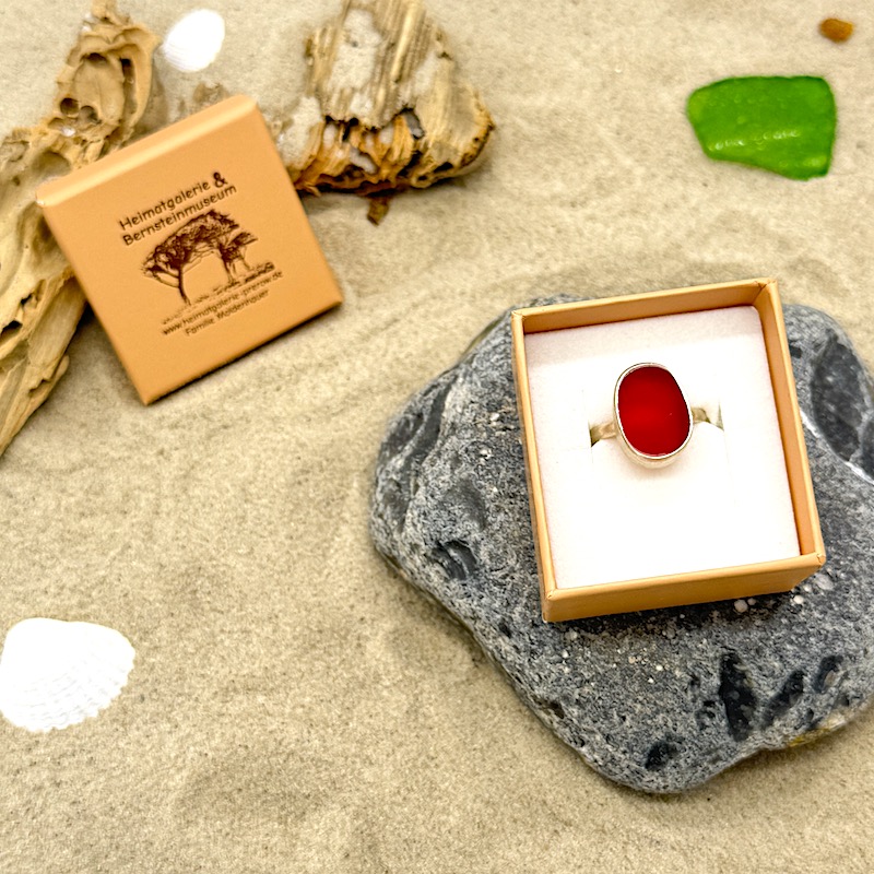 Meerglasring 925er Sterling-Silber – Rötlich hell