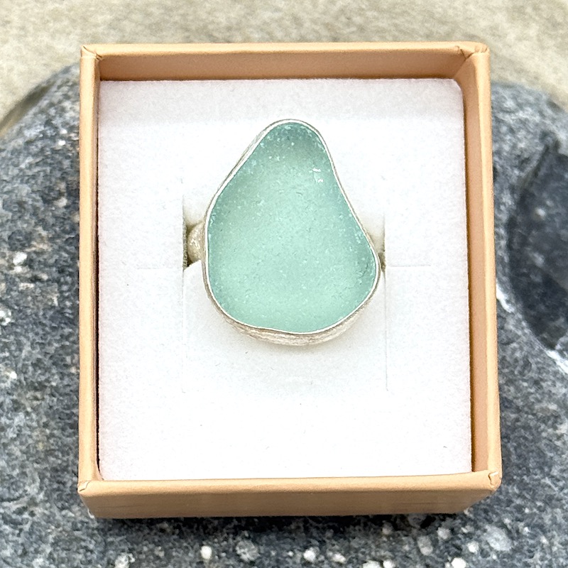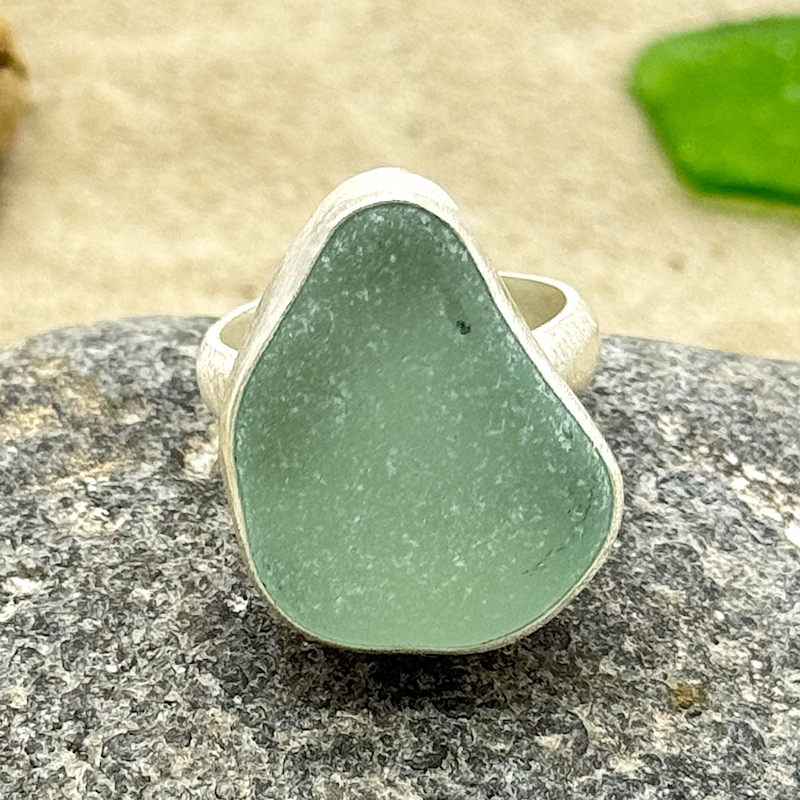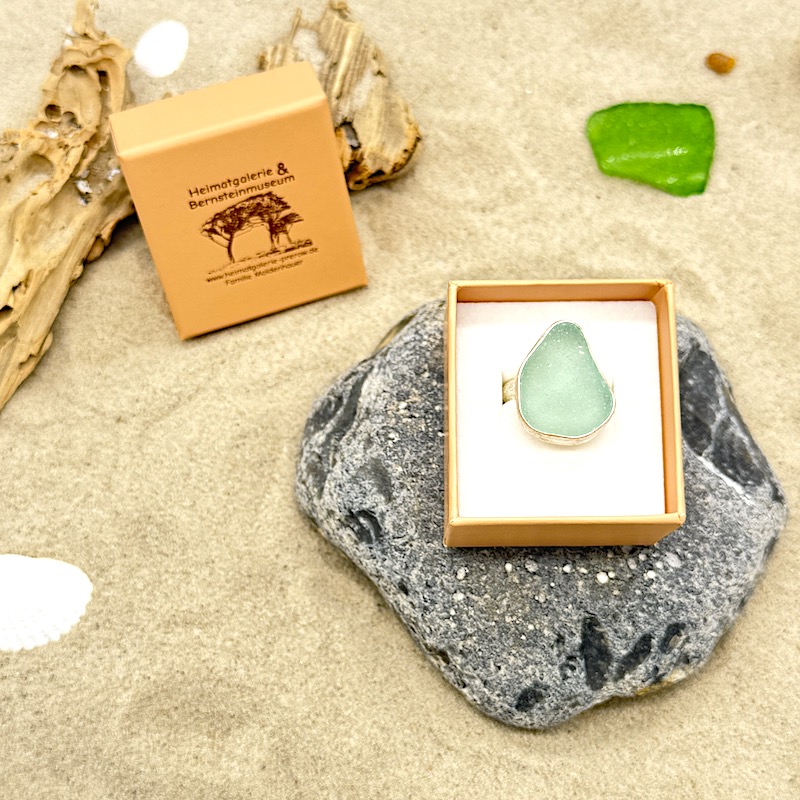 Exclusiver größenverstellbarer Ring mit Strandglas, verarbeitet in edlem 925er Sterling Silber, der Lust auf Meer macht :):):)