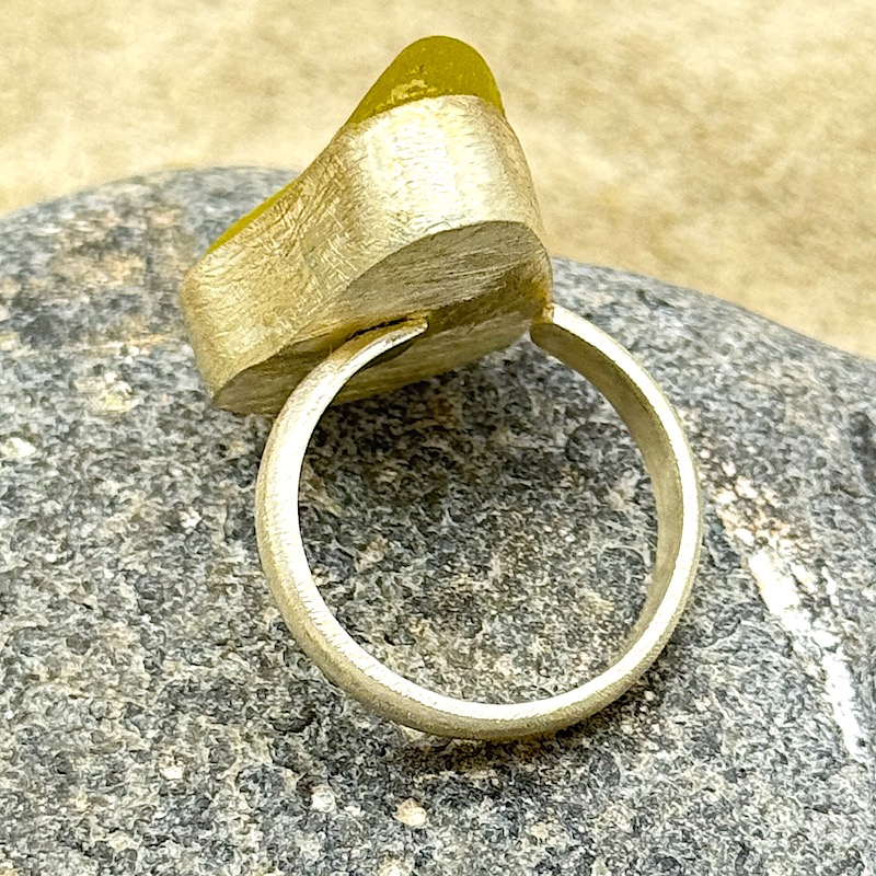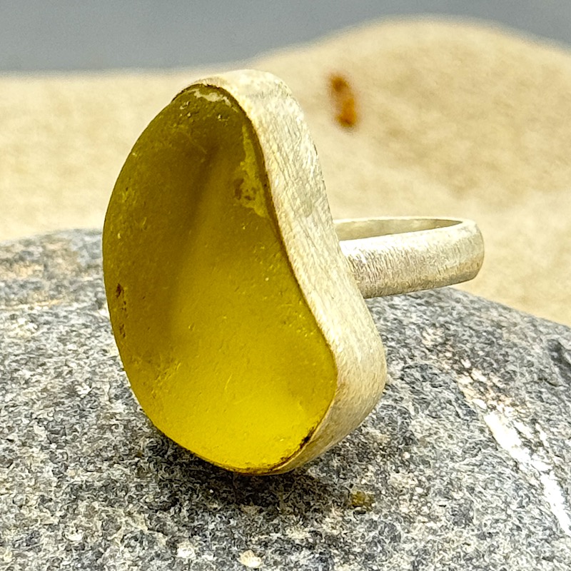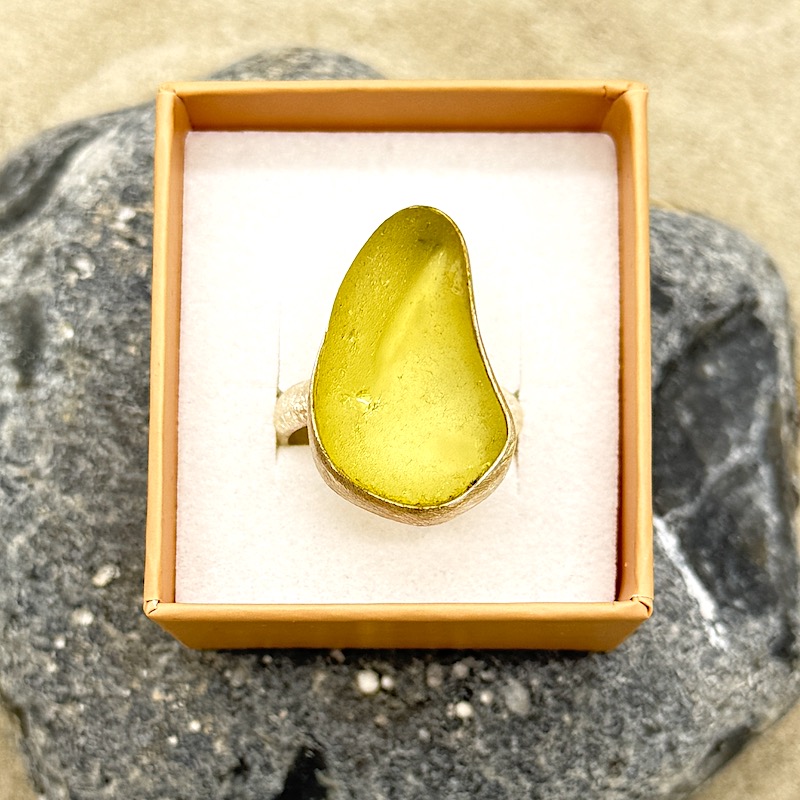 Meerglasring – Frozen 925er Sterling-Silber – beige gelb