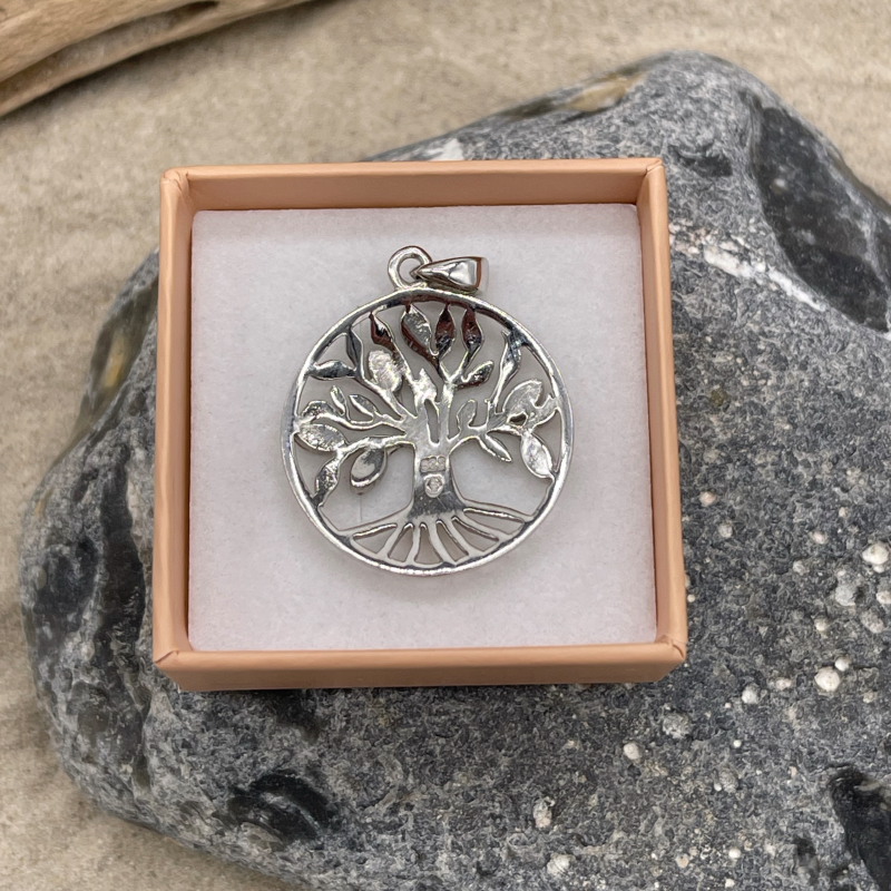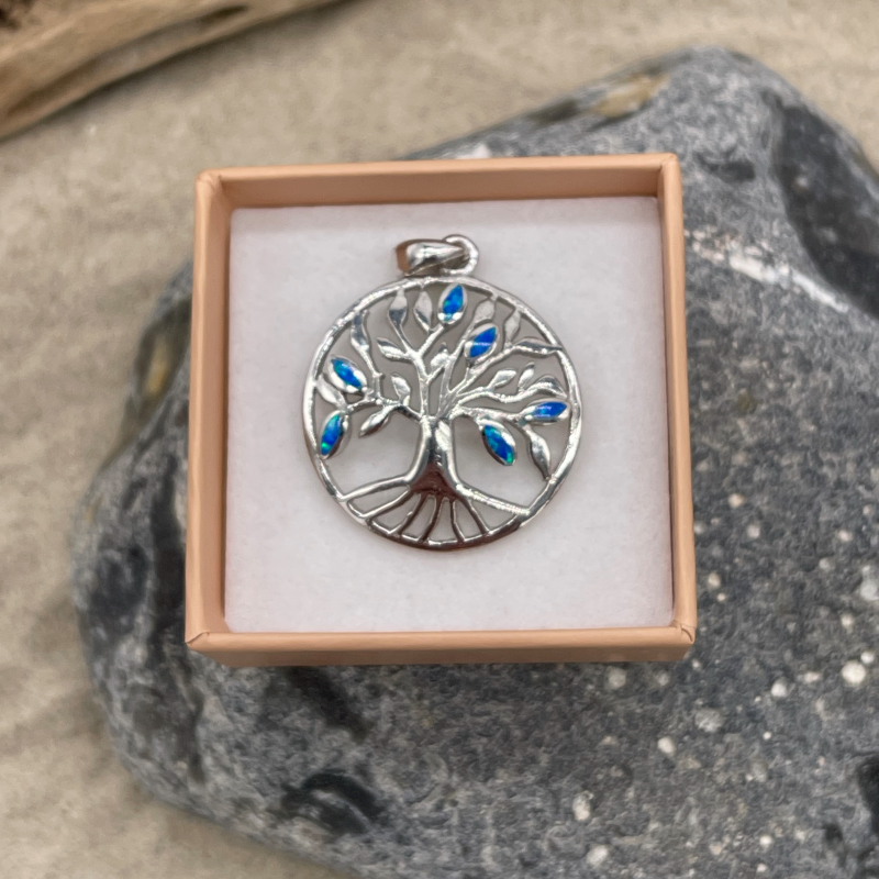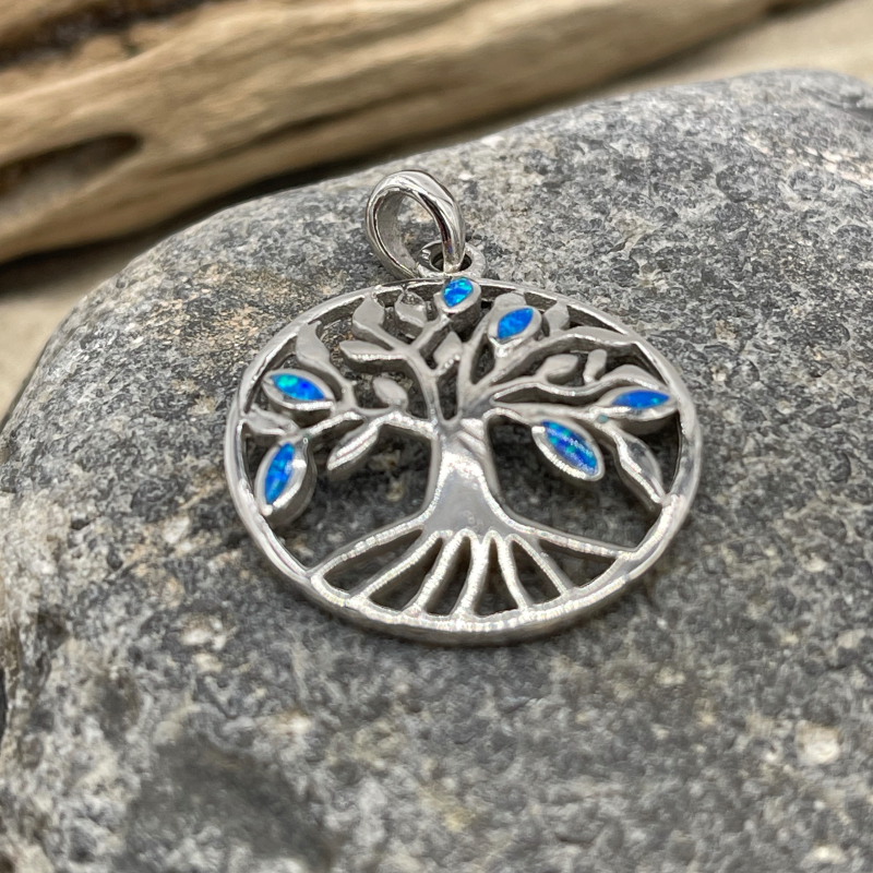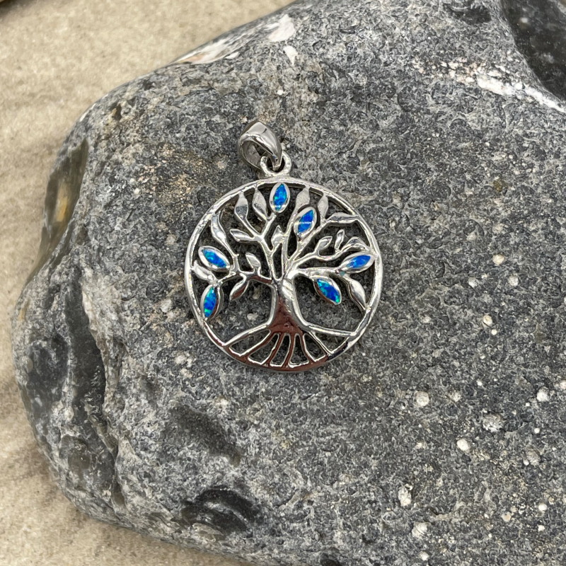 Anhänger Lebensbaum blau mittel – 925er Sterling Silber