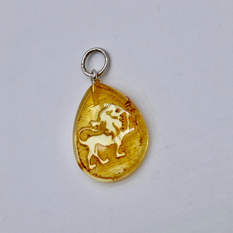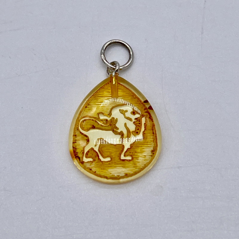 Ein ganz besonderes Geschenk für jeden Löwen: Klarer Bernsteinanhänger mit filigraner Gravur des Sternzeichens Löwe und Aufhängung teilweise mit Öse oder Ring – jeweils aus 925er Sterlingsilber… (Aufhängung – mit Silberöse oder Silberring – kann vom Foto abweichen)